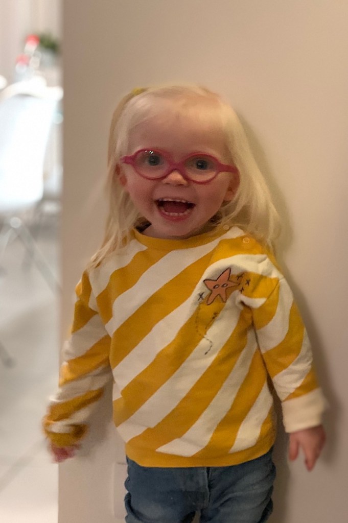 Ondertussen stond er thuis ook nog een bezoekje aan de oogarts gepland voor Eefje wegens vermoeden van een lui oogje. Eind mei (vlak voor de opname) was ze daar al eens geweest maar toen was het niet zo goed gelukt. Nu dus opnieuw en er is duidelijk een groot verschil aan haar linkeroog. Ze moet starten met een brilletje, eind januari moet ze terug op controle. Er zal dan ook nog bekeken worden of het nodig is om een oogje af te plakken. Hopelijk niet, ze heeft al lang genoeg plakkers in haar gezichtje gehad. En dat brilletjes is op zich ook niet erg, maar in eerste instantie had ik wel het gevoel van ‘is het nu nog niet genoeg geweest?’. Maar we zijn er al aan gewend en eigenlijk staat ze er wel goed mee. Ze laat het ook flink op staan dus ze zal duidelijk merken dat het beter is.