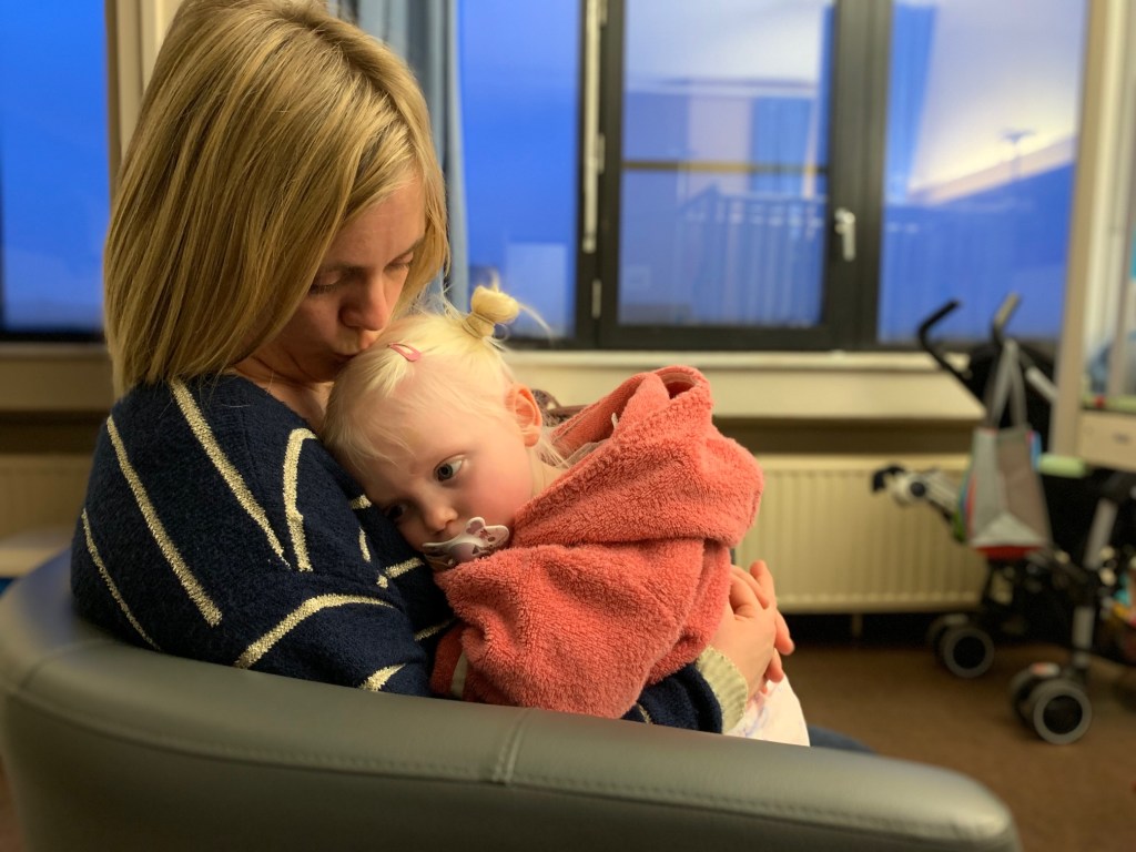 Nadien kwam de dokter nog langs en Eefje blijkt een dubbele oorontsteking te hebben, ze had ook terug koorts. Ze gaan medicatie opstarten en haar laten uitzieken. Dit betekent helaas ook weer dat ze in afzondering op haar kamer moet blijven om de andere kindjes niet te besmetten. Dat blijft toch het allermoeilijkste; je kind daar ziek achterlaten wetende dat ze dan ook nog eens op haar kamer moet blijven en niet bij de andere kindjes kan…