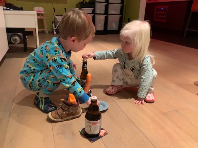 Ook thuis is de Sint ons niet vergeten. Samen zetten ze hun schoentje klaar, Floris hielp Eefje want hij wist al goed wat er allemaal moest klaar gelegd worden.
