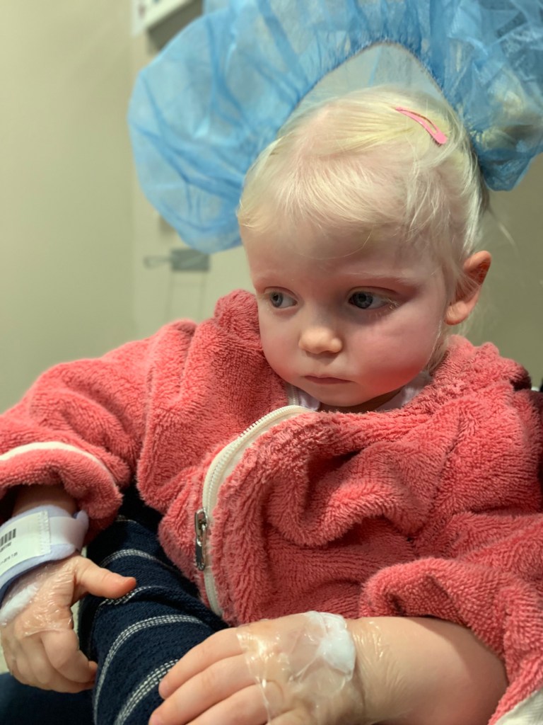 Het was eerst nog even kantje boordje of de ingreep wel zou doorgaan omdat Eefje wat ziek was geweest. Ze had geen koorts meer, maar het was toch twijfelen tot op het laatste moment. Na overleg tussen de anesthesist en haar behandelende arts werd er dan toch beslist om alles te laten verlopen zoals gepland.