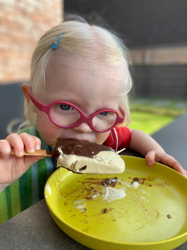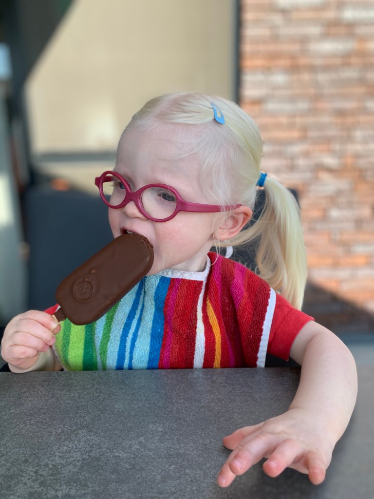 Als we kijken waar ze nu staat, durf ik eindelijk te zeggen dat ze het eetprobleem overwonnen heeft en dat nu écht verleden tijd is. De keren dat het nog moeilijk loopt, zijn eigenlijk de momenten dat ze ook gewoon koppig is. Het blijft een peuter met een sterke eigen wil. En dat kan dan nog eens voor strubbelingen zorgen aan tafel, maar volgens mij niet meer dan bij een andere peuter in zijn koppigheidsfase. Uiteindelijk hebben we nu voldoende houvast om te weten hoe we hier best mee omgaan en dan draait ze snel weer bij.